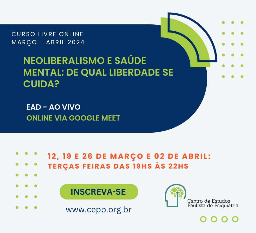 Em 2022, o burnout, esgotamento causado por estressado mal administrado em ambiente de trabalho, foi acrescentado na nova versão do Código Internacional de Doenças (CID-11), sendo definido como como um problema de saúde de ordem ocupacional. Em dezembro de 2021, A rede social LinkedIn, centrada em relações profissionais, elegeu a saúde mental como tendência para empresas no próximo ano (2022). A partir da extensão da pandemia, empresas ficaram cada vez mais atentas a relação entre saúde mental e a chamada produtividade. Este curso pretende rever estas relações por meio de uma análise histórico-política de possíveis conexões entre saúde mental e neoliberalismo, partindo das análises de Michel Foucault em seu curso O nascimento da Biopolítica. O filósofo francês inaugura um novo campo de debates, trabalhando o a produção de uma racionalidade liberal a partir de um indivíduo que deve investir em um capital que lhe é próprio, e inclui sua própria biologia: o capital humano.