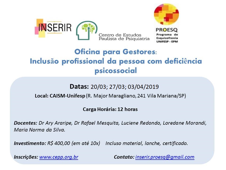 OFICINA PARA GESTORES: INCLUSÃO PROFISSIONAL DA PESSOA COM DEFICIÊNCIA PSICOSSOCIAL