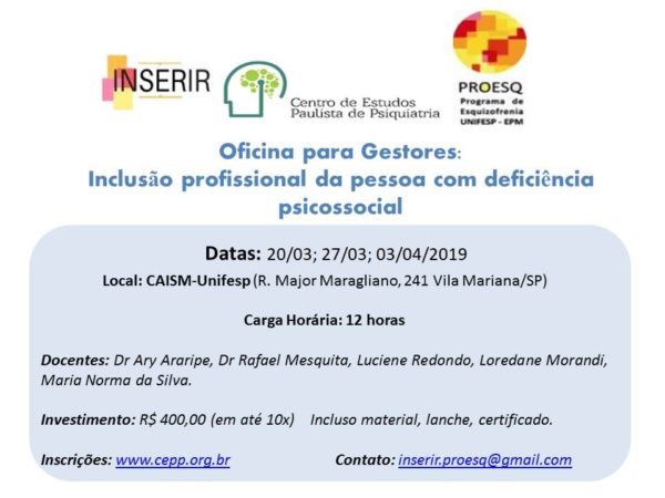 - Objetivo: Apoiar gestores de recursos humanos das grandes empresas na inclusão e crescimento profissional de pessoas com transtornos mentais.